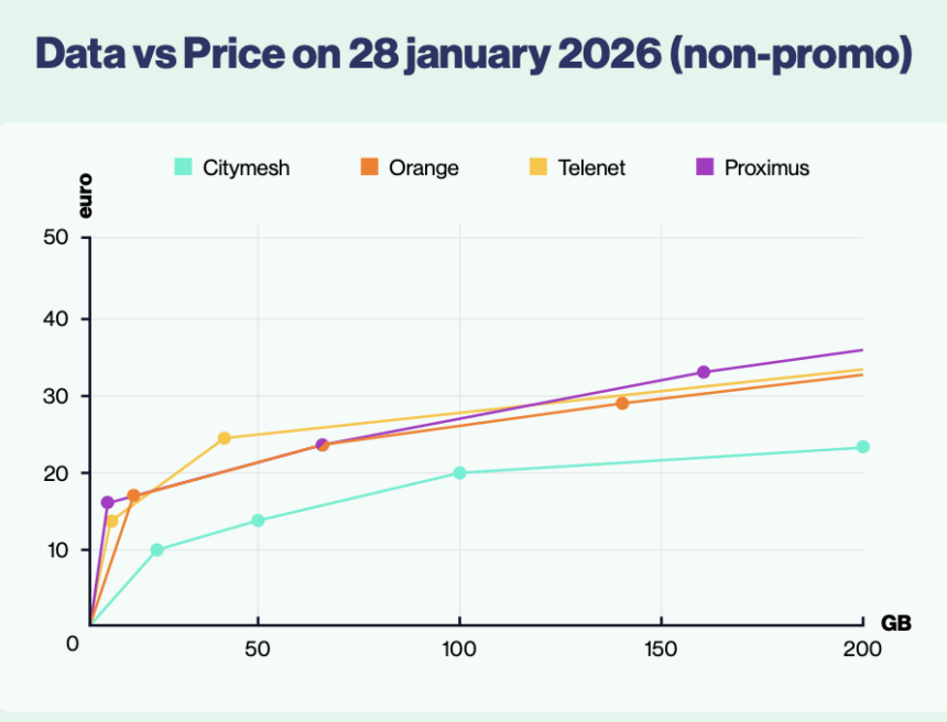 Citymesh is launching a mobile phone subscription for self-employed people and small businesses for £20 per month. This includes 100 GB of data and telephony. This is significantly lower than the prices charged by competitors Proximus, Orange and Telenet. As a welcome offer, Citymesh is offering the package for £17 for the first six months.
